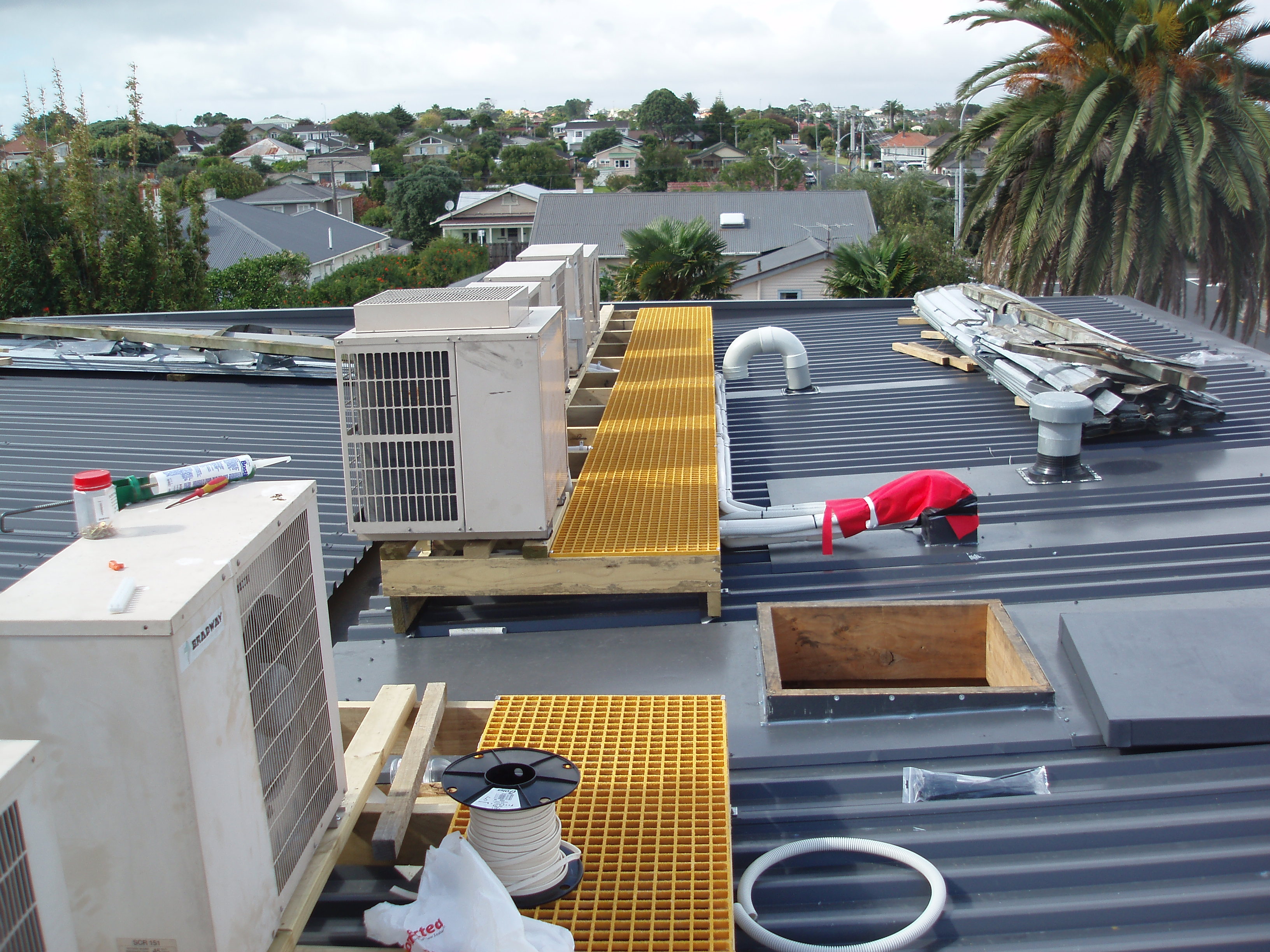 Fibregrate being installed under aircon units