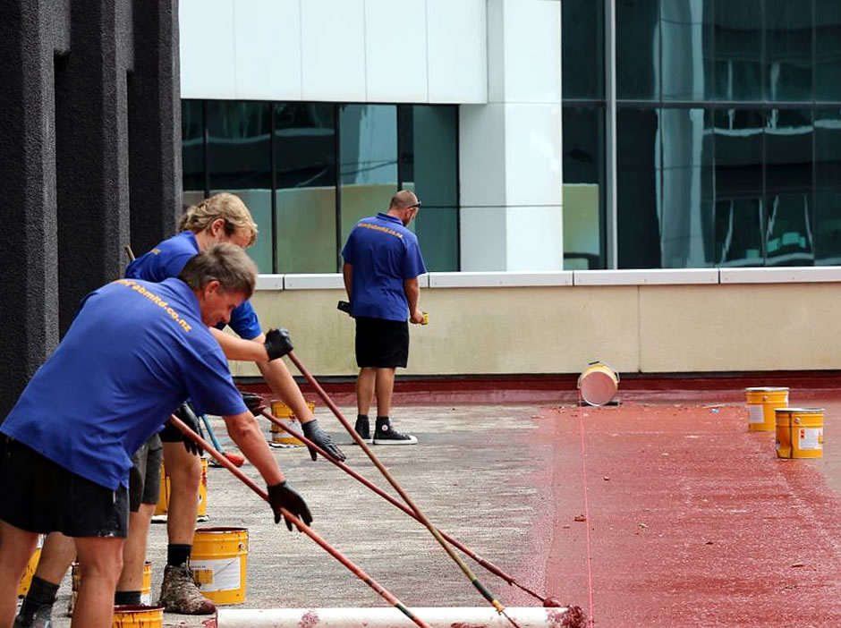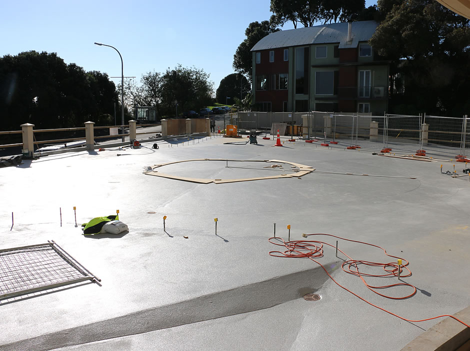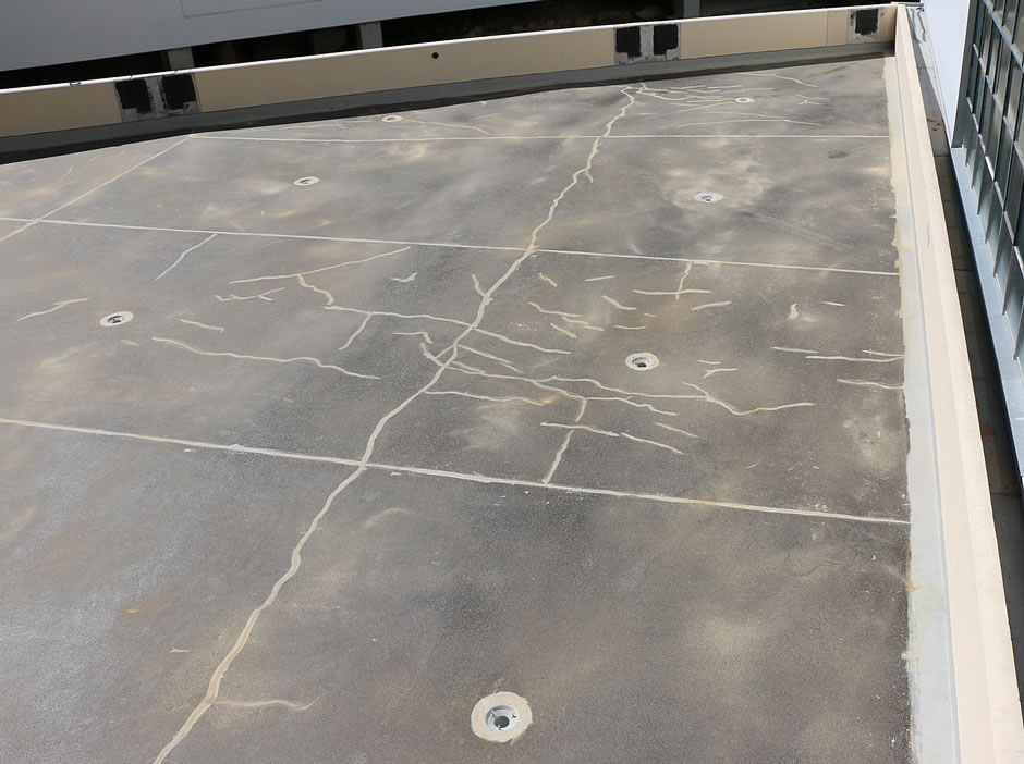 Showcase Sika Car Park Deck System - 128m3 concrete screed, Sika concrete primer, special concrete mix pumped, 1.5 degree falls Sika Car Park Deck System - 1300m2, Sika 350N and Sika 375 with aggregate, over concrete screed Sika Car Park Deck System - top coat Sika 359 - circle in different RAL specified by the client Sika Balcony System - Monterey Apartments - concrete screeds and falls with hatching (coloured lines) Drone camera survey of roof - asset condition report Beca - removal of concrete tiles from deck, then Sika MTC22 system applied Before and after: Sikalastic MTC - 33 Hugo Johnston Dr - Carter Holt Harvey AMP Tower, Sika MTC being applied (base coat) Before and after: 34 Shortland St, FRP composite handrails and walkway Re-roofing and accessways in FRP Underfloor duct, Carter Holt Harvey Mahunga Drive; before, during and after Waterproofing deck High lift, Hobson St, Auckland CBD